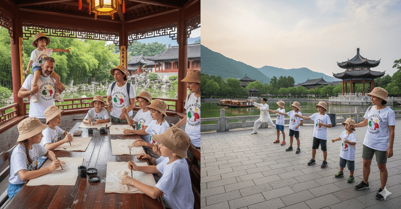 Corso di lingua cinese al mattino. Attività e viaggi bambini e genitori al pomeriggio.